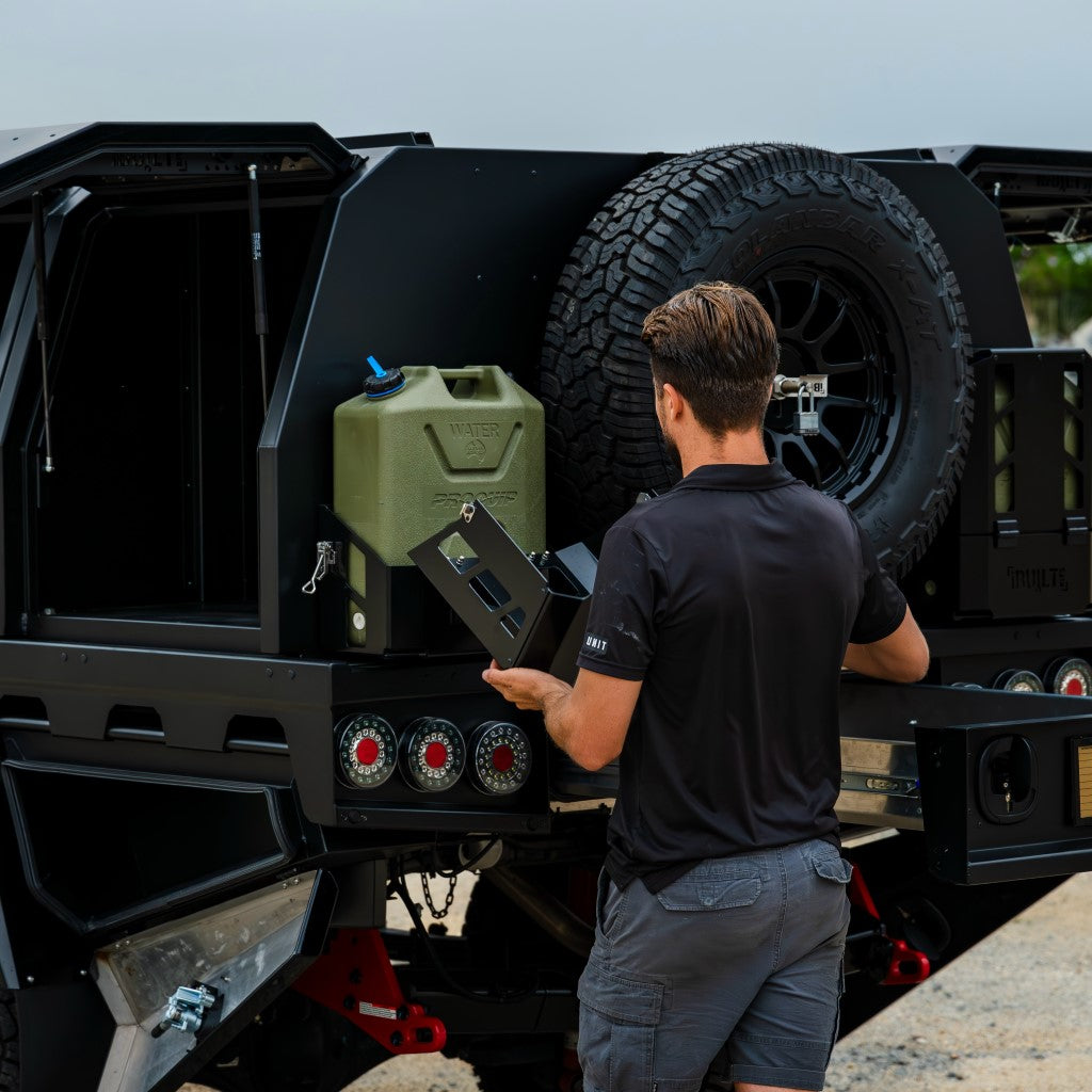 Our most popular, most copied jerry can holders allow safe sotrage of water or fuel to ensure prying hands don't end your trip early.